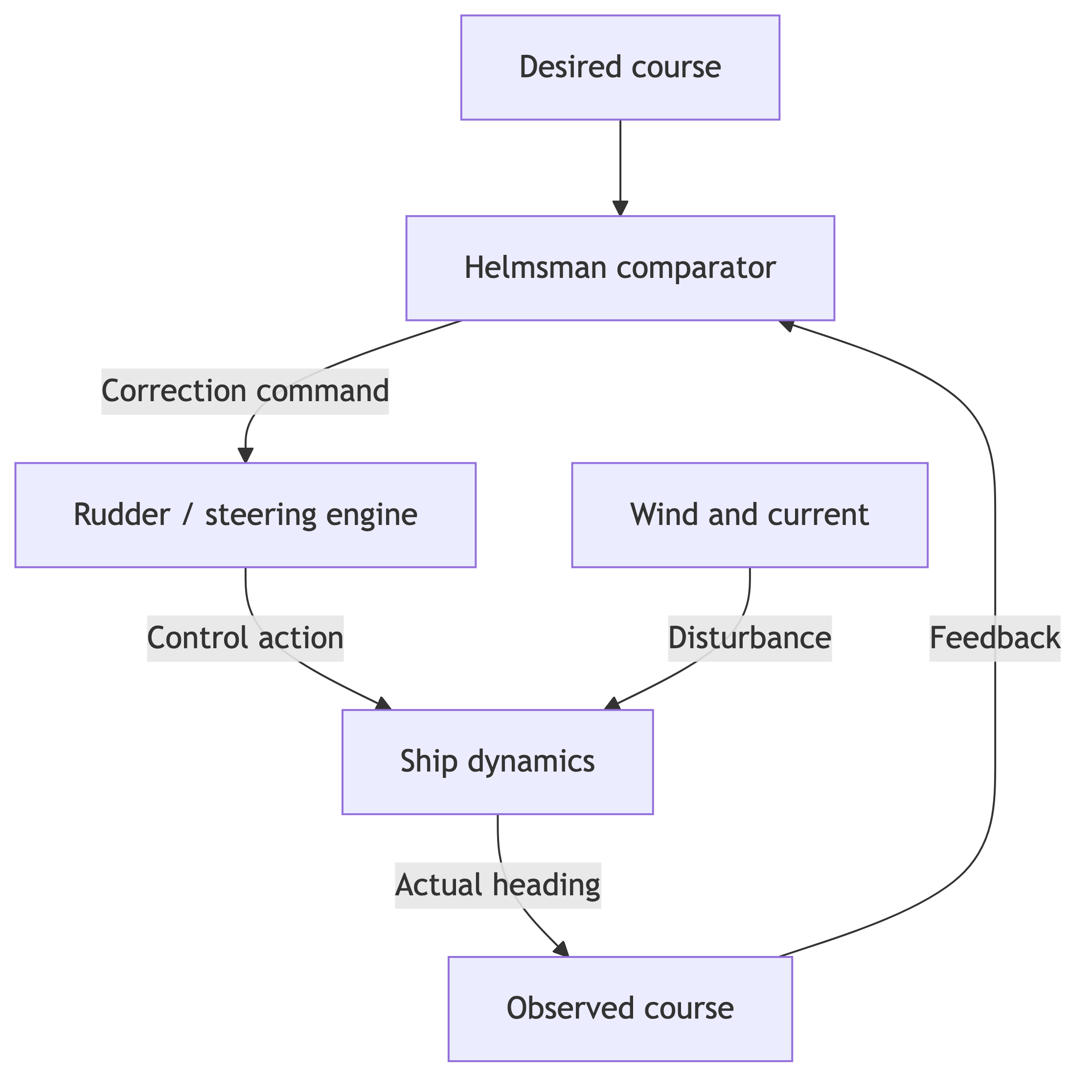 Wiener called the discipline that studies such systems cybernetics — the science of control and communication in living organisms and machines. The word comes from the Greek κυβερνήτης ("helmsman"): like a ship's helmsman, the system continuously compares the current course with the goal and corrects its trajectory (Fig. 1).